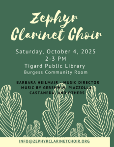 The ensemble consists of students, alumni, clarinet enthusiasts, and retired professionals, playing original compositions and arranged music in a variety of styles.